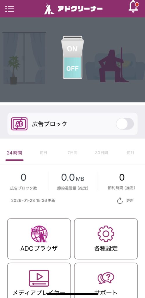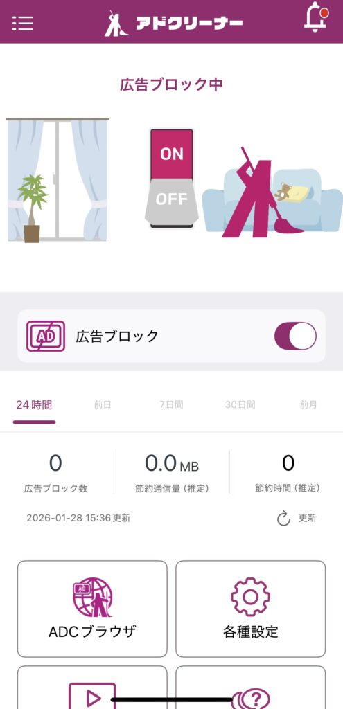 広告ブロックアプリって、もっと主張が強いものかと思っていましたが、Glocal ADクリーナーは良い意味で存在感が控えめです。